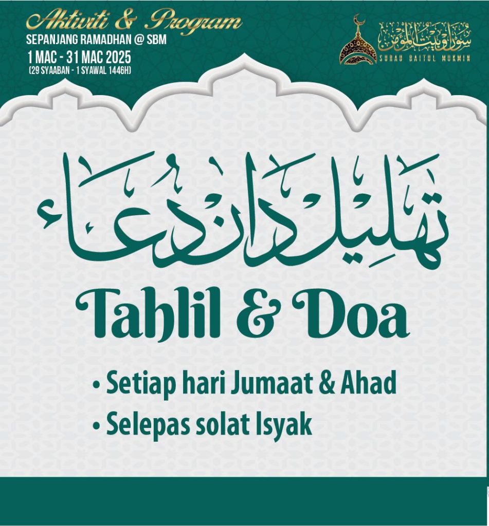 Assalamu’alaikum. Seperti minggu lepas, malam ini (Jumaat) akan diadakan Tahlil (Arwah) dan Doa. Kepada yang berhajat boleh serahkan borang tahlil